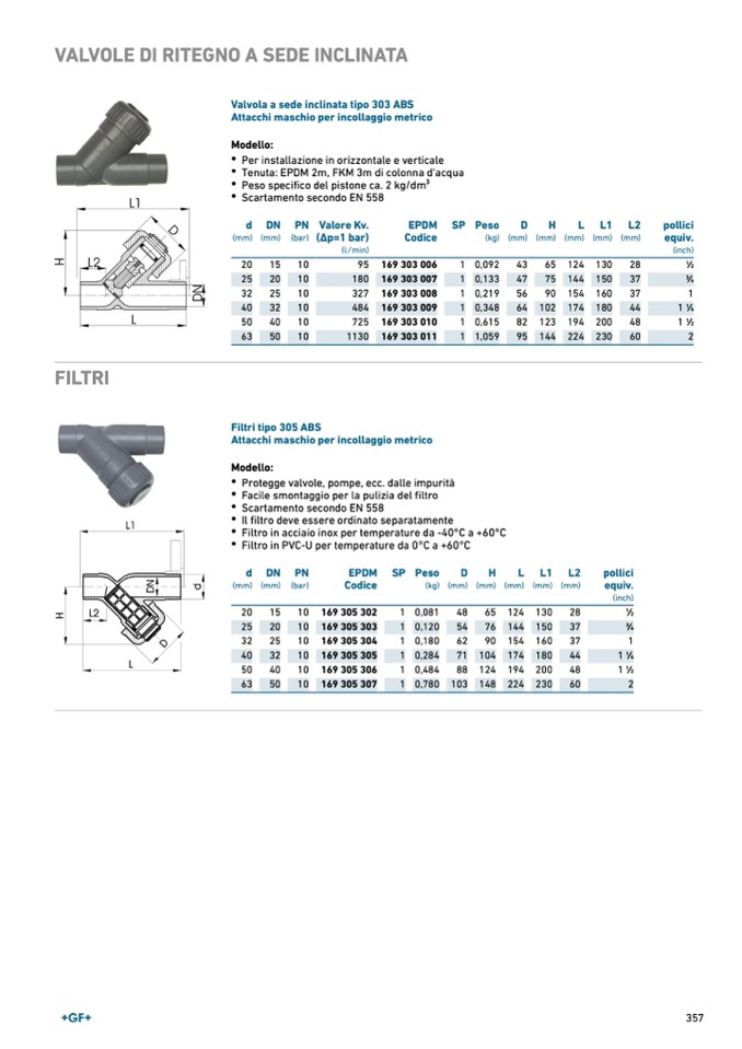 Filtro in PVC-U per temperature da 0°C a +60°C