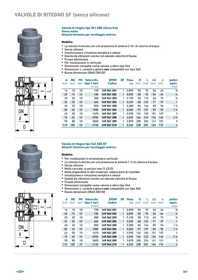 La valvola fa tenuta con una pressione di almeno 2 mt. di colonna d'acqua