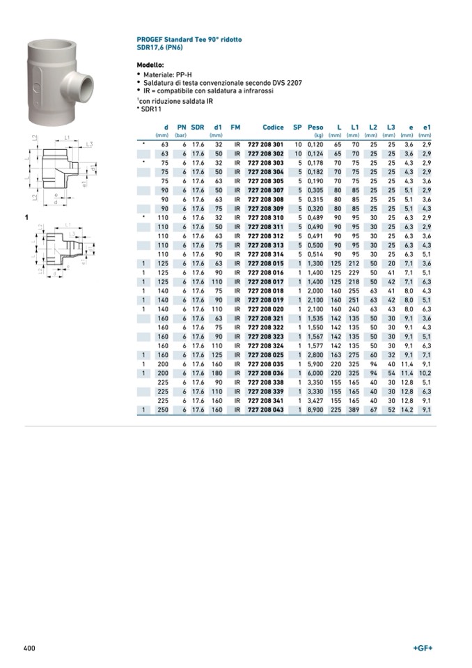 PROGEF Standard Tee 90° ridotto