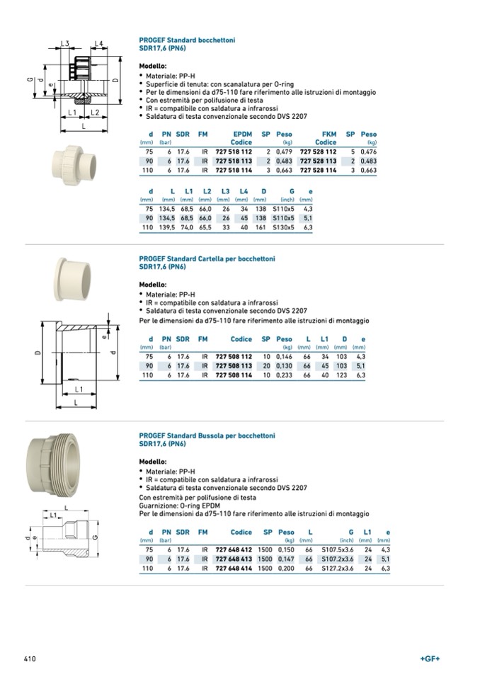 Per le dimensioni da d75-110 fare riferimento alle istruzioni di montaggio