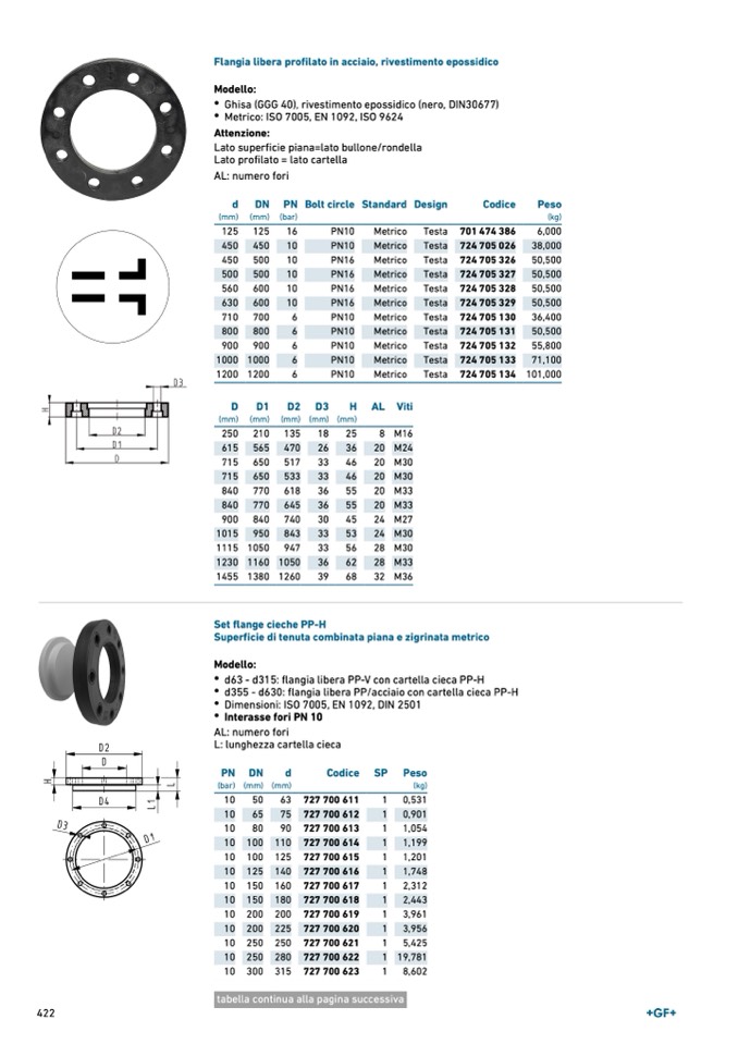 d355 - d630: flangia libera PP/acciaio con cartella cieca PP-H