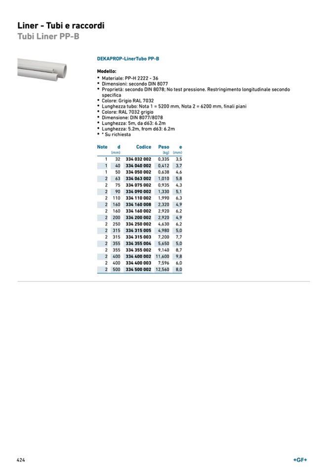 Proprietà: secondo DIN 8078; No test pressione. Restringimento longitudinale secondo