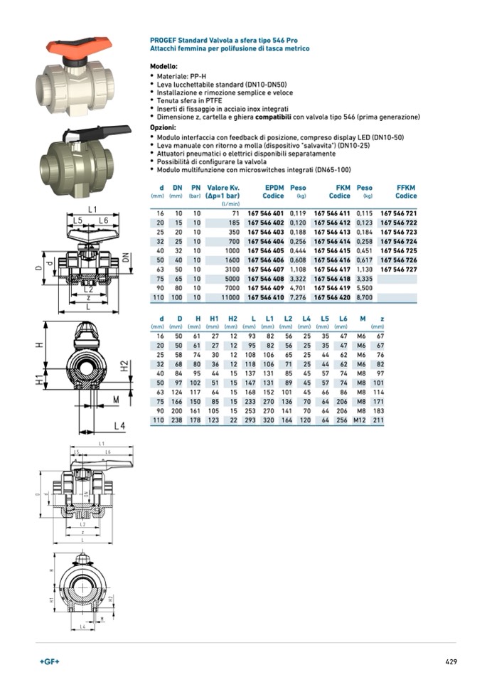 PROGEF Standard Valvola a sfera tipo 546 Pro