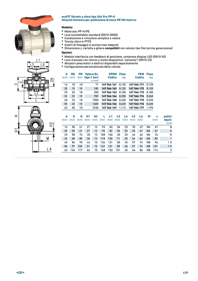 ecoFIT Valvole a sfera tipo 546 Pro PP-H