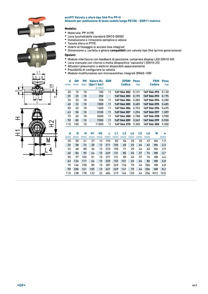 ecoFIT Valvola a sfera tipo 546 Pro PP-H