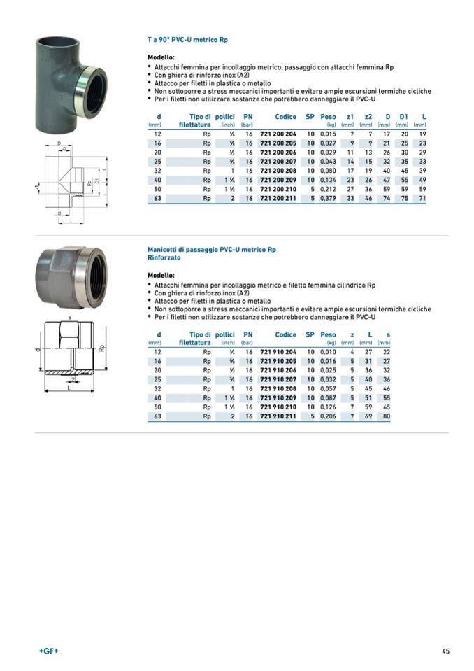 Attacchi femmina per incollaggio metrico e filetto femmina cilindrico Rp