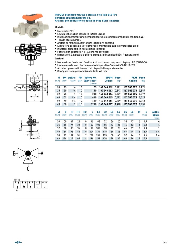 PROGEF Standard Valvola a sfera a 3 vie tipo 543 Pro