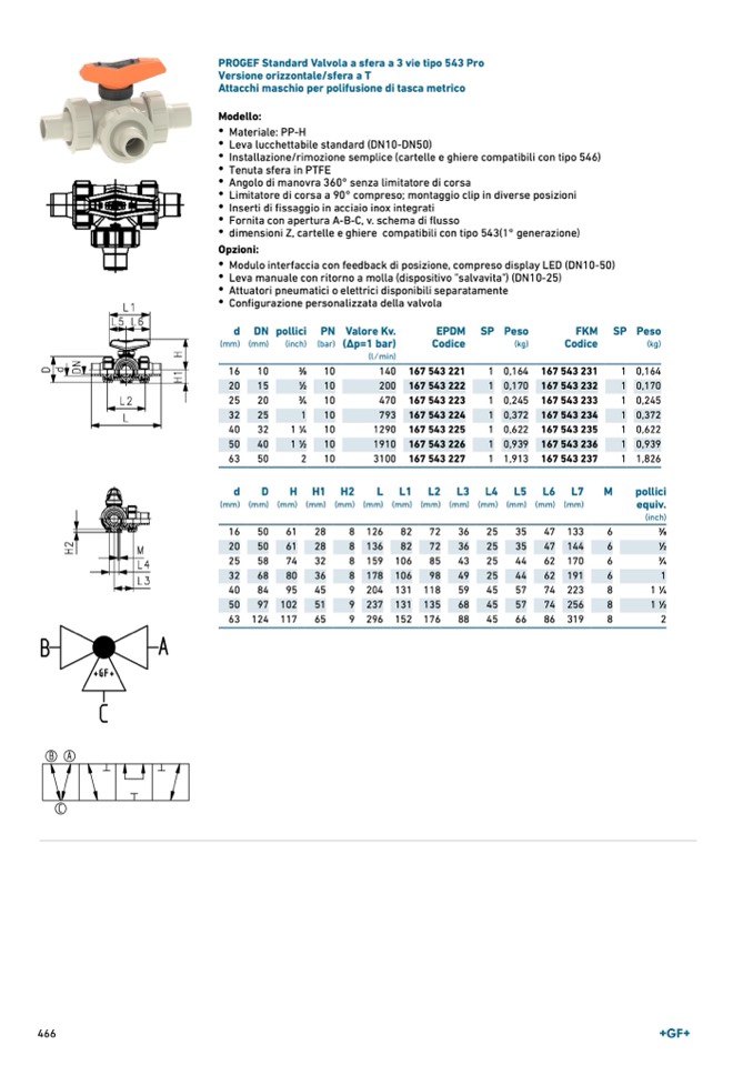 PROGEF Standard Valvola a sfera a 3 vie tipo 543 Pro