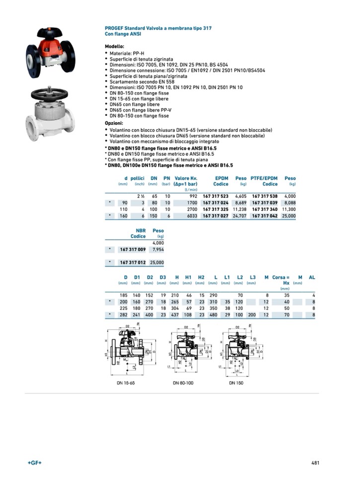 PROGEF Standard Valvola a membrana tipo 317