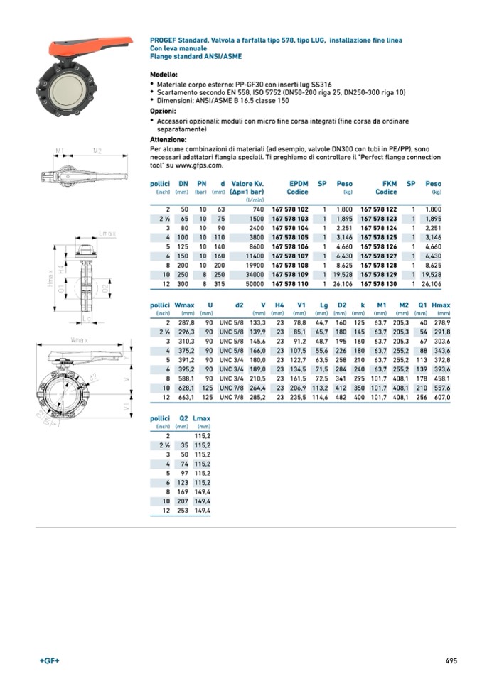 PROGEF Standard, Valvola a farfalla tipo 578, tipo LUG, installazione fine linea