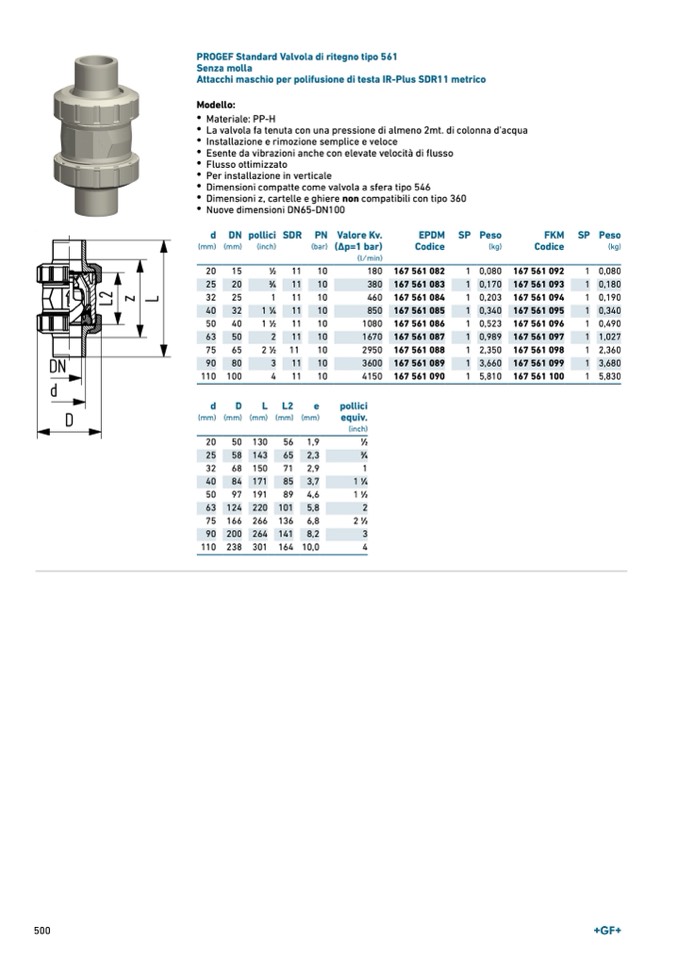 PROGEF Standard Valvola di ritegno tipo 561