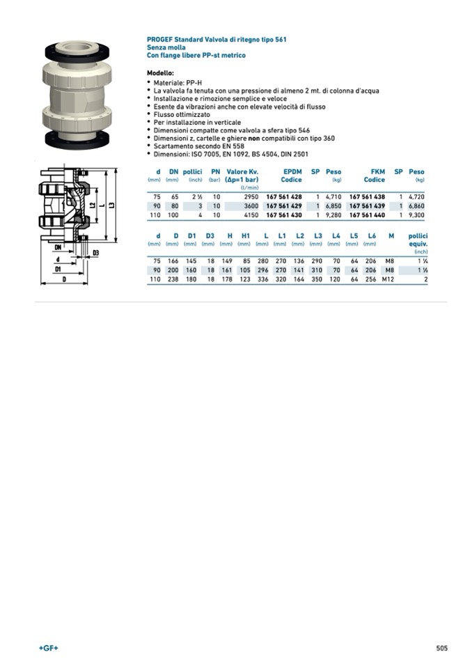 PROGEF Standard Valvola di ritegno tipo 561