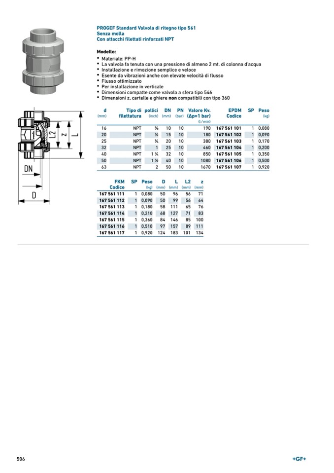 PROGEF Standard Valvola di ritegno tipo 561