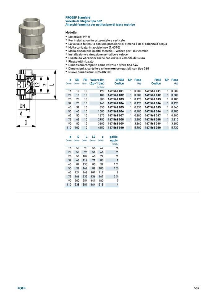 Valvola di ritegno tipo 562