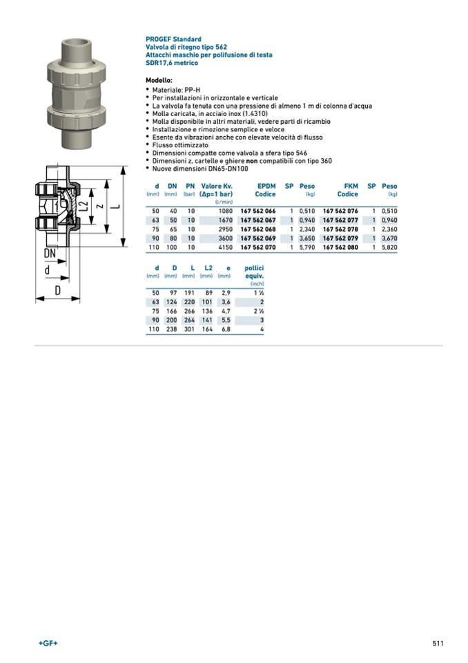 La valvola fa tenuta con una pressione di almeno 1 m di colonna d'acqua
