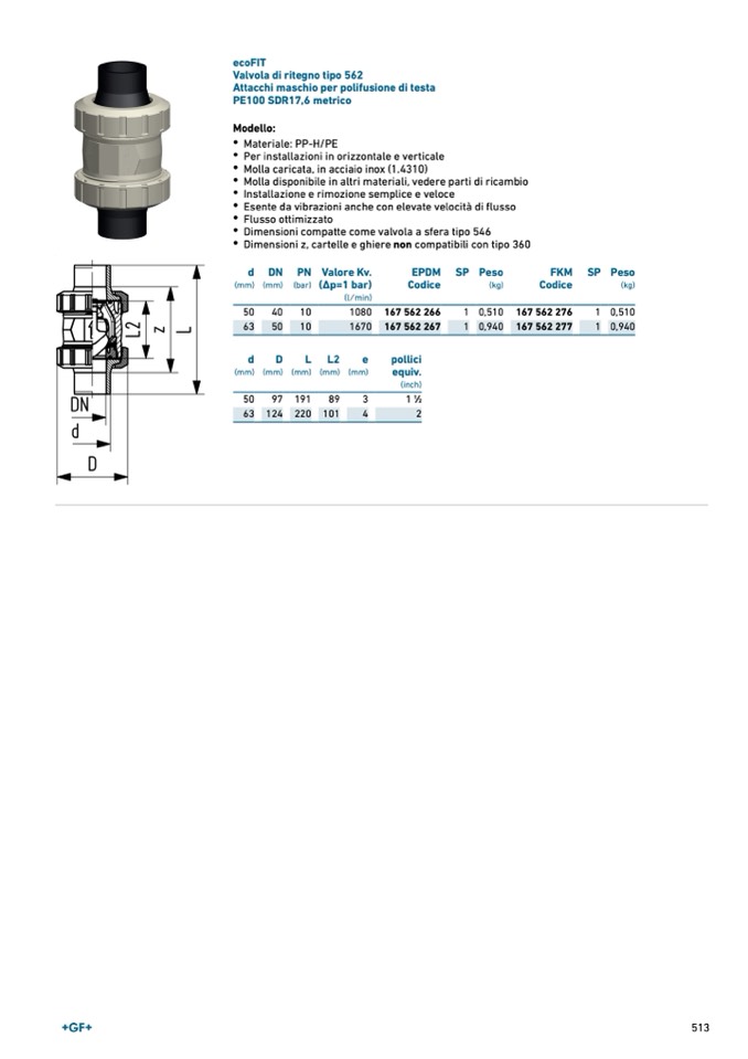 Valvola di ritegno tipo 562
