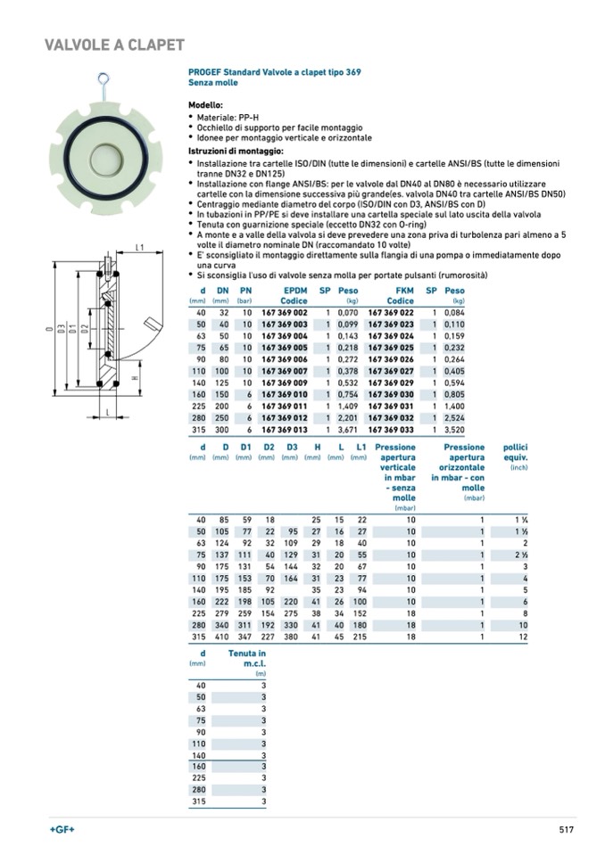 Si sconsiglia l'uso di valvole senza molla per portate pulsanti (rumorosità)