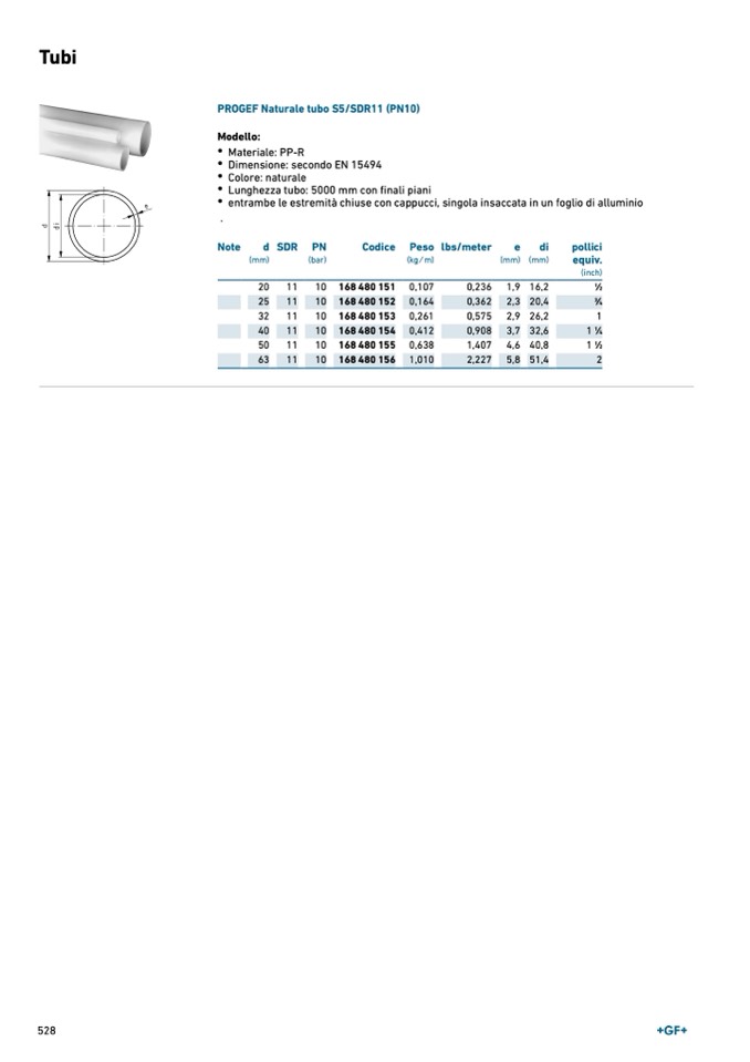 PROGEF Naturale tubo S5/SDR11 (PN10)