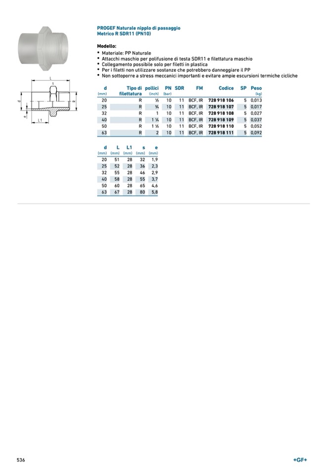 Attacchi maschio per polifusione di testa SDR11 e filettatura maschio