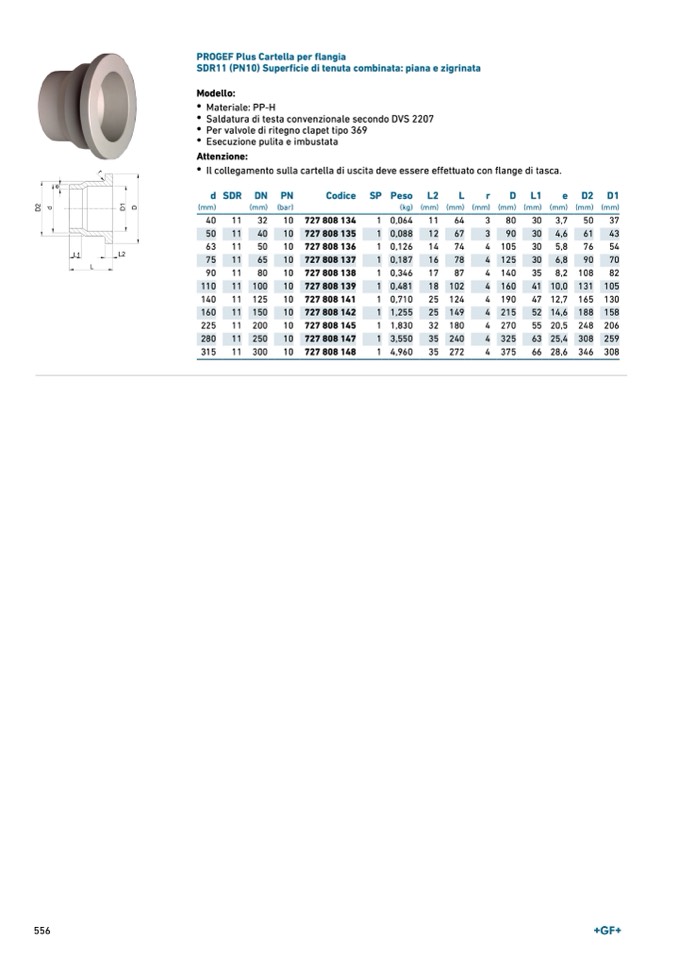 SDR11 (PN10) Superficie di tenuta combinata: piana e zigrinata
