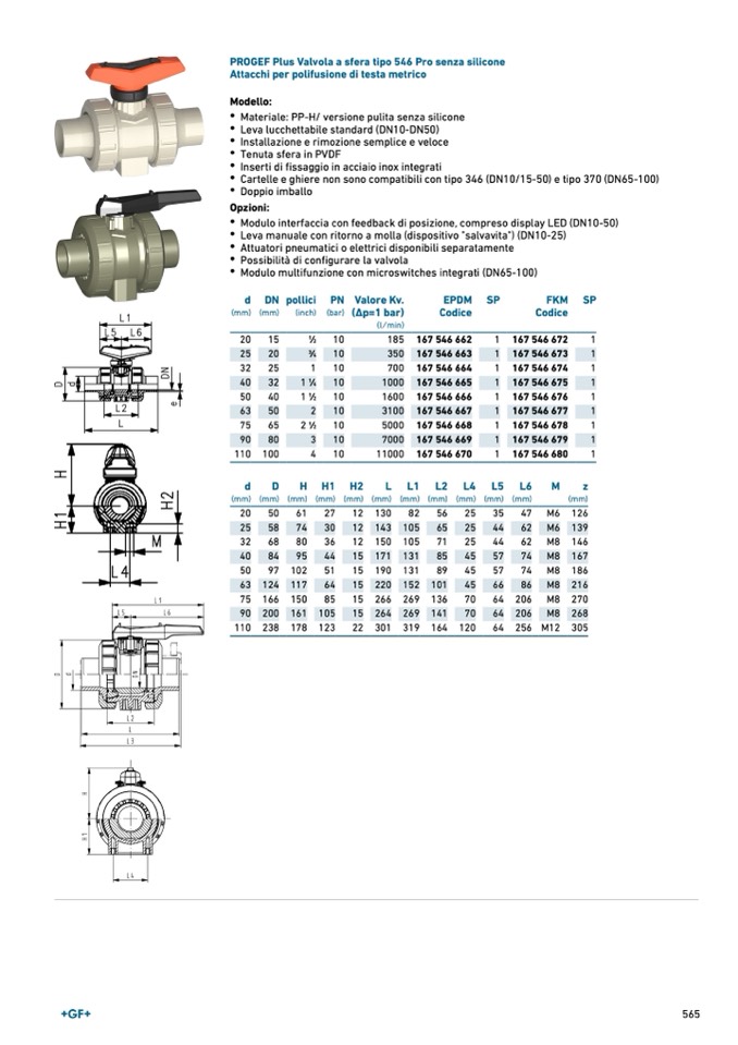 PROGEF Plus Valvola a sfera tipo 546 Pro senza silicone