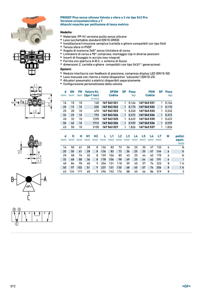 PROGEF Plus senza silicone Valvola a sfera a 3 vie tipo 543 Pro