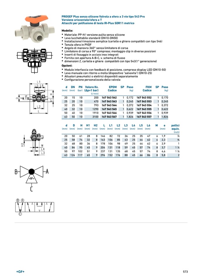 PROGEF Plus senza silicone Valvola a sfera a 3 vie tipo 543 Pro