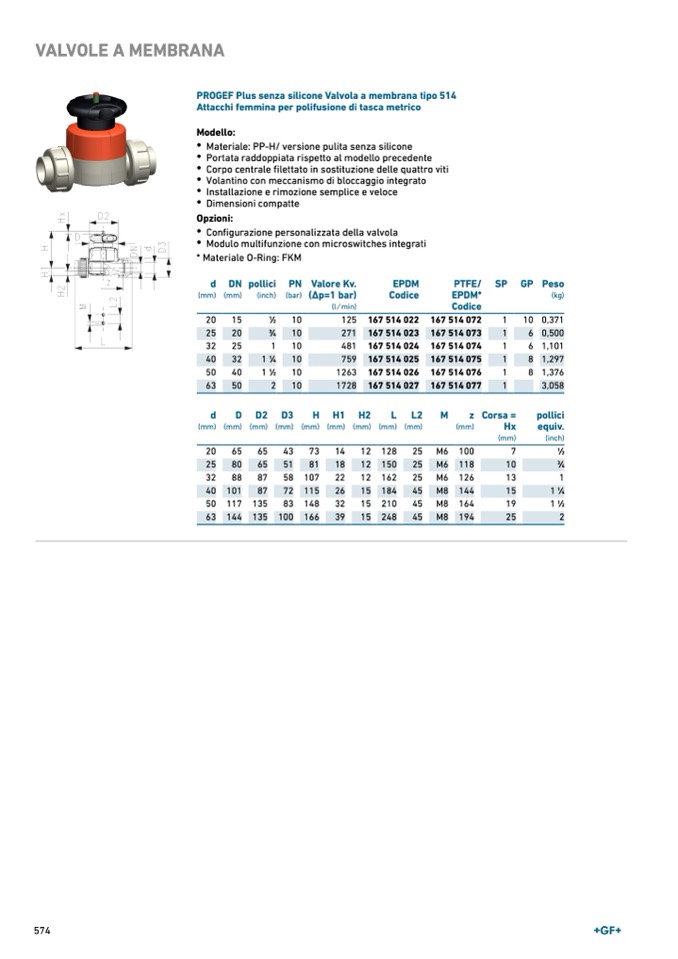 PROGEF Plus senza silicone Valvola a membrana tipo 514