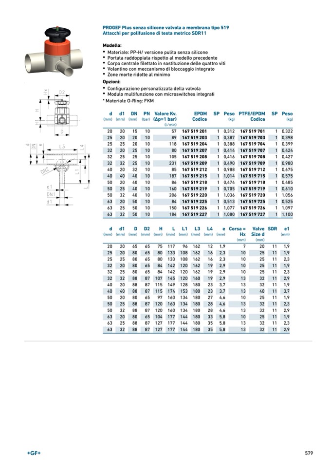 PROGEF Plus senza silicone valvola a membrana tipo 519