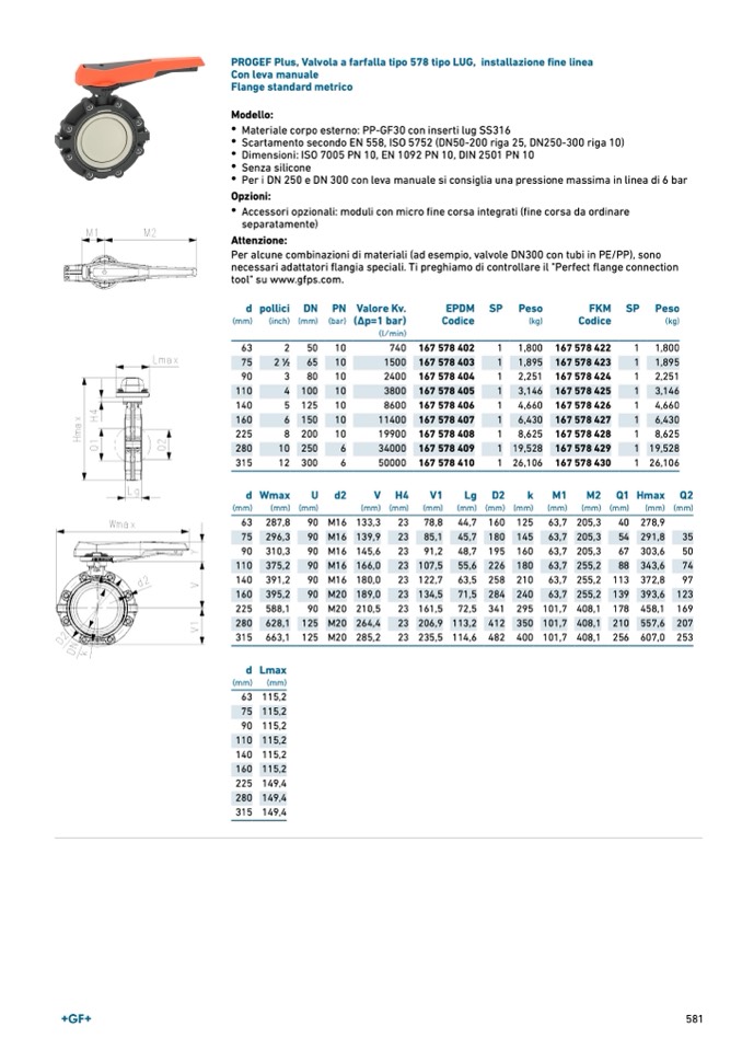 PROGEF Plus, Valvola a farfalla tipo 578 tipo LUG, installazione fine linea