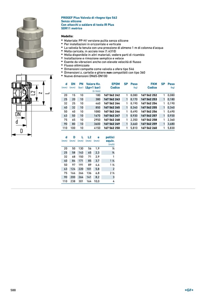 PROGEF Plus Valvola di ritegno tipo 562