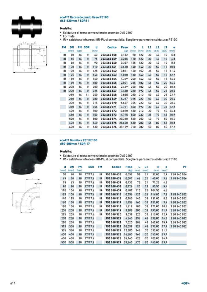 IR = saldatura infrarossi (IR-Plus) compatibile. Scegliere parametro saldatura: PE100