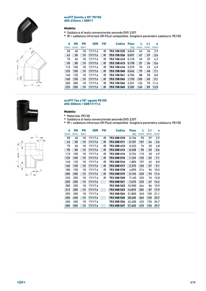 IR = saldatura infrarossi (IR-Plus) compatibile. Scegliere parametro saldatura: PE100
