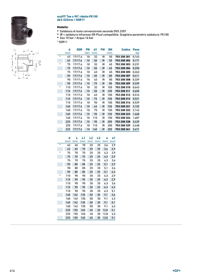 IR = saldatura infrarossi (IR-Plus) compatibile. Scegliere parametro saldatura: PE100