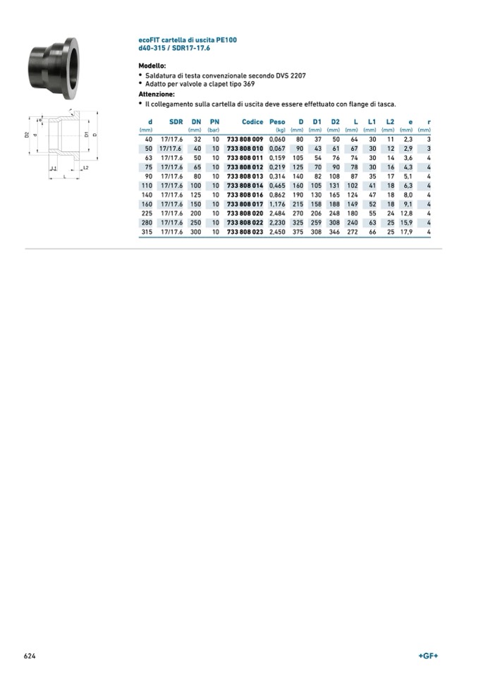 Il collegamento sulla cartella di uscita deve essere effettuato con flange di tasca.