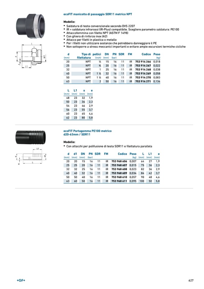 Con attacchi per polifusione di testa SDR11 e filettatura parallela