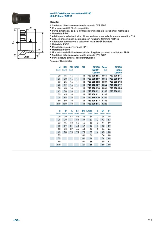 Per le dimensioni da d75-110 fare riferimento alle istruzioni di montaggio