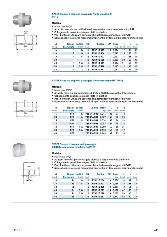 SYGEF Standard nipplo di passaggio filettato maschio NPT PN16