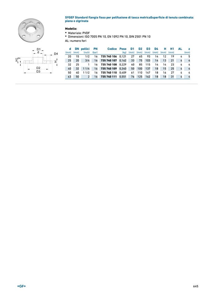 SYGEF Standard flangia fissa per polifusione di tasca metricaSuperficie di tenuta combinata: