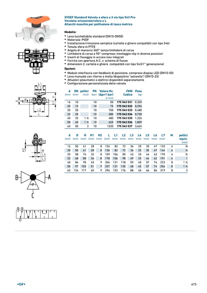 SYGEF Standard Valvola a sfera a 3 vie tipo 543 Pro