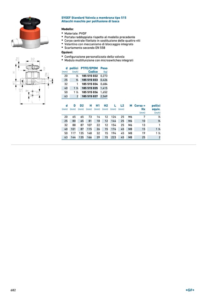 SYGEF Standard Valvola a membrana tipo 515