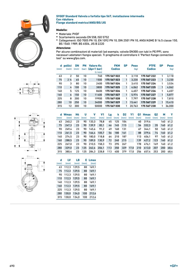 SYGEF Standard Valvola a farfalla tipo 567, installazione intermedia