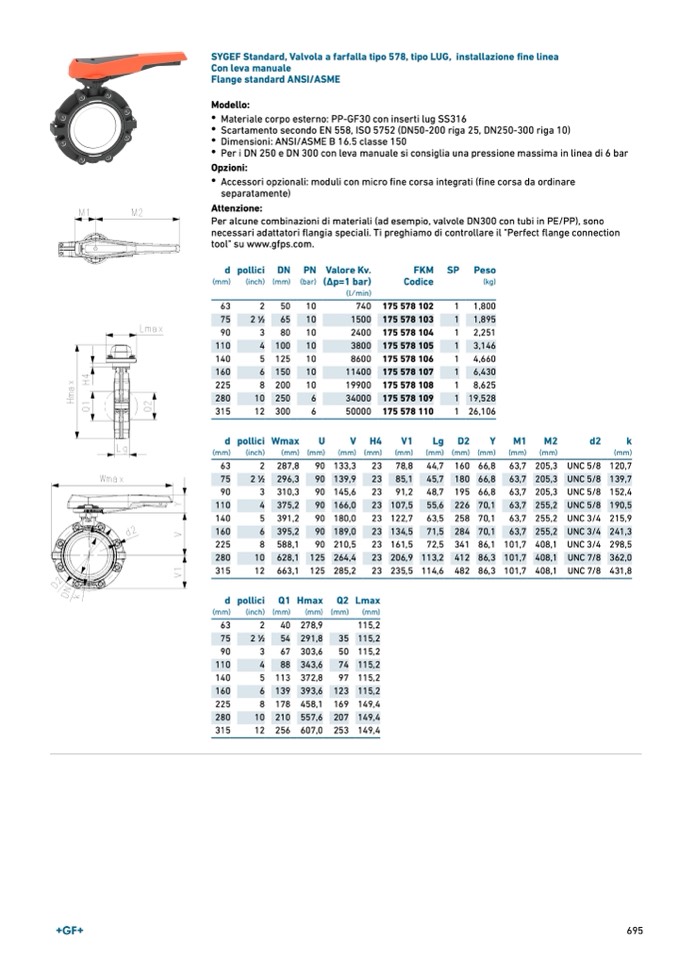 SYGEF Standard, Valvola a farfalla tipo 578, tipo LUG, installazione fine linea