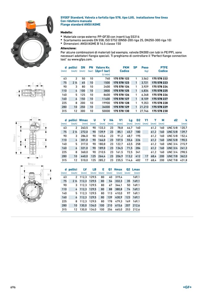 SYGEF Standard, Valvola a farfalla tipo 578, tipo LUG, installazione fine linea