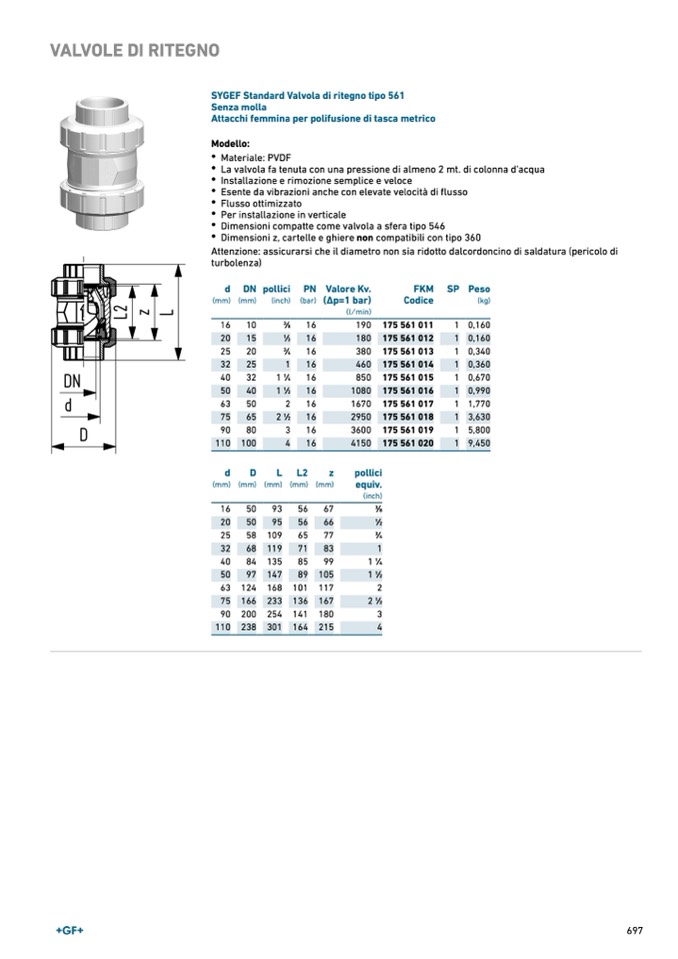 La valvola fa tenuta con una pressione di almeno 2 mt. di colonna d'acqua