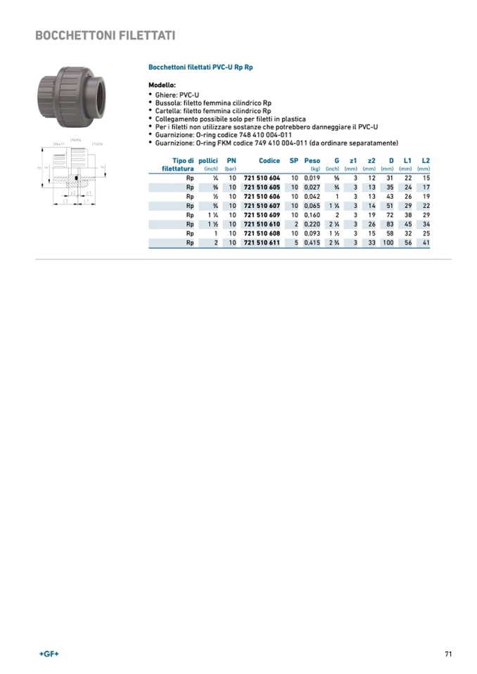 Bocchettoni filettati PVC-U Rp Rp
