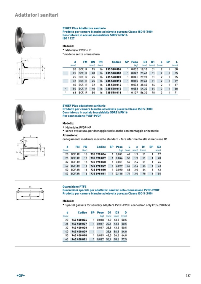 Special gaskets for sanitary adapters PVDF-PVDF connection only (735.598.8xx)