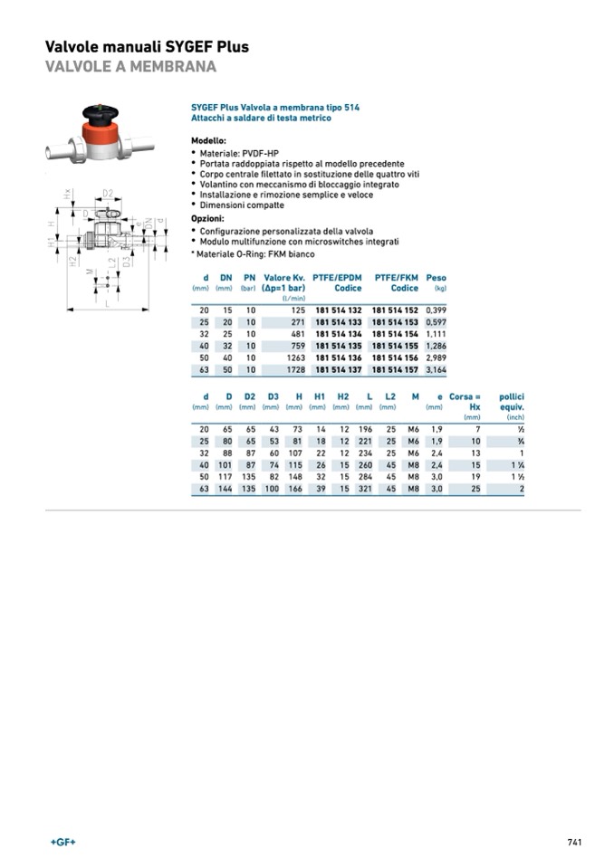 SYGEF Plus Valvola a membrana tipo 514