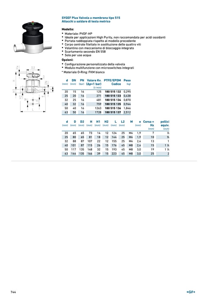 Ideale per applicazioni High Purity, non raccomandata per acidi ossidanti