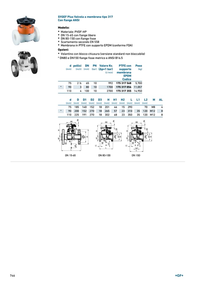 SYGEF Plus Valvola a membrana tipo 317